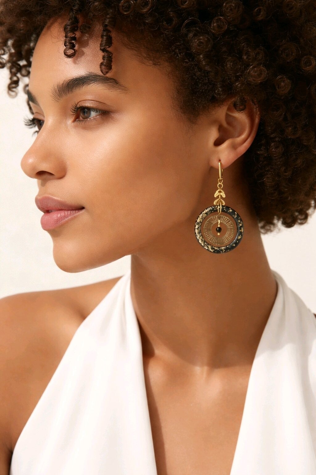 Boucles d’oreilles artisanales fines et aériennes, pensées comme une caresse dorée sur la peau.